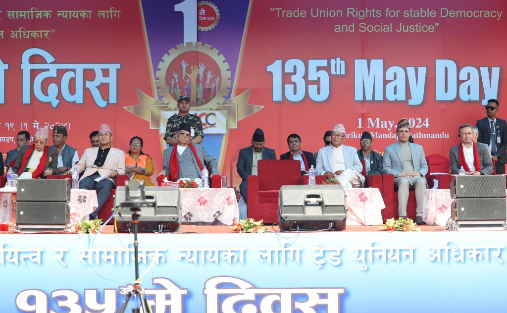 “सीमित साधनस्रोत र असीमित आकाङ्क्षाका बीच सन्तुलन कायम गर्दै श्रमिकमैत्री नीति, कानुन र कार्यक्रमका निम्ति सरकार सधै सकारात्मक रुपमा प्रस्तुत हुनेछ,” प्रधानमन्त्री प्रचण्डले भन्नुभयो, “मुख्यतः विदेशमा रहेका नेपालीको स्वाभिमान र हितरक्षा, नीति निर्माणमा श्रमजीवी वर्गको सम्मानजनक प्रतिनिधित्व, योगदानमा आधारित सामाजिक सुरक्षा कार्यक्रमको प्रभावकारी कार्यान्वयन, श्रमको सम्मान र श्रम संस्कृतिको विकासमा सरकारले प्राथमिकताका साथ काम गर्नेछ ।”