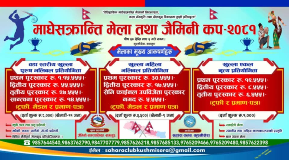 बागलुङ जिल्लाको जैमिनी नगरपालिका–१ कुश्मीसेरामा आयोजना हुने माघेसक्रान्ति मेला तथा जैमिनी कप–२०८१को तयारी तीब्र पारिएको छ ।