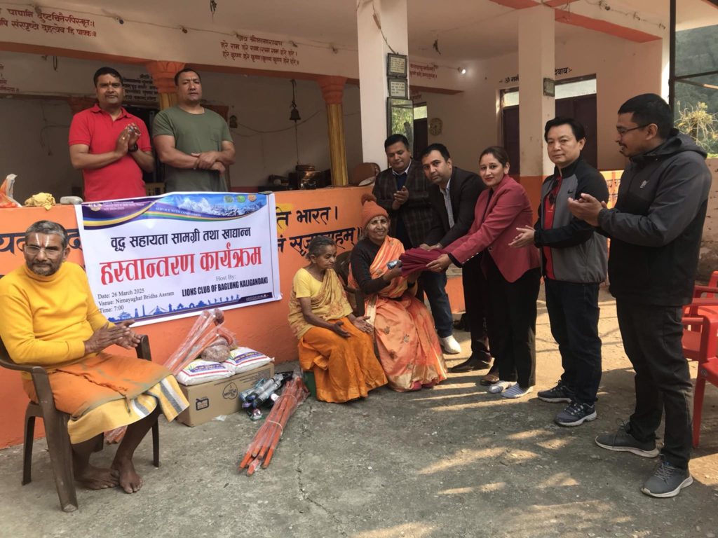 लायन्स क्लव अफ बागलुङ कालिगण्डकीले बागलुङ नगरपालिका ४ निर्यघाटमा रहेको रामानुज आश्रमलाई वृद्ध सहायता सामाग्री हस्तान्तरण गरेको छ ।