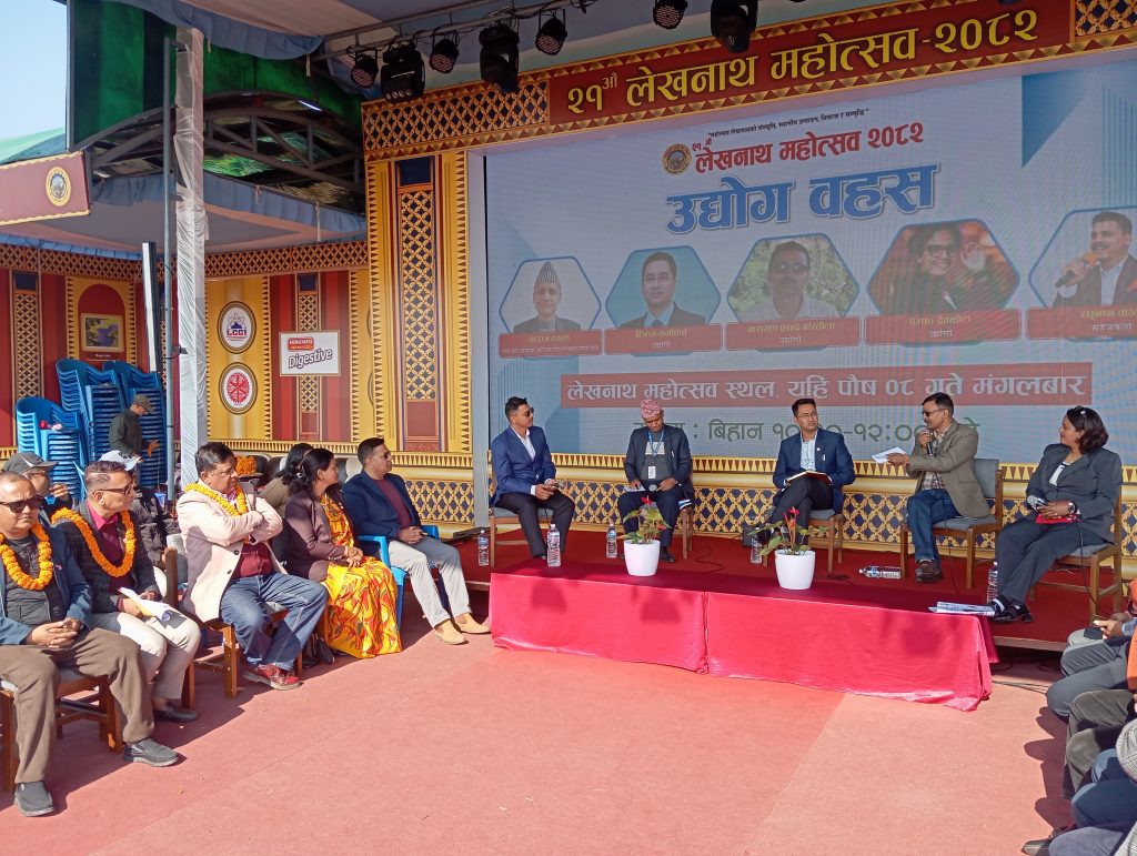 लेखनाथ, ८ पुस — कास्कीको लेखनाथमा जारी २१औँ लेखनाथ महोत्सवमा उद्योग, कृषि र संस्कृतिको प्रवर्द्धनलाई केन्द्रमा राख्दै उद्योग बहस कार्यक्रम सम्पन्न भएको छ। महोत्सवअन्तर्गत पहिलो पटक स्टेज कार्यक्रममार्फत उद्योगी, नीति निर्माता र उपभोक्ताबीच प्रत्यक्ष संवाद गरिएको हो।