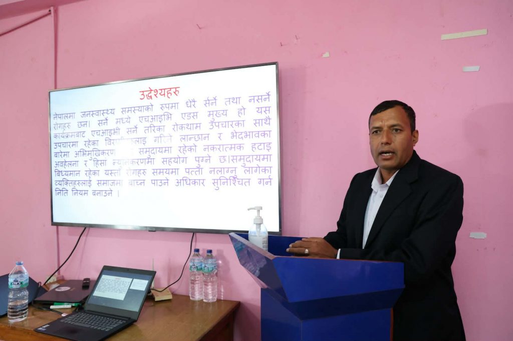 कार्यक्रममा जनस्वास्थ्य अधिकृत संगिता घिमिरे, क्षयकुष्ठ सुपरभाइजर देवप्रकास घिमिरे तथा जनस्वास्थ्य निरीक्षक लक्ष्मी शर्माले सहजीकरण गर्दै एचआईभी सम्बन्धी विद्यमान कानुनी व्यवस्था, मानव अधिकार, संक्रमित व्यक्तिको गोपनीयता तथा राज्यका दायित्वबारे सहभागीहरूलाई जानकारी गराएका थिए। साथै जिल्लामा एचआईभी संक्रमणको वर्तमान अवस्था, संक्रमणको जोखिम, उपचारको पहुँच, परामर्श सेवा तथा रोकथामका उपाय, मुख्य जोखिम समूहले भोगिरहेका समस्या, उपचारमा देखिएका चुनौतीहरू, उपलब्ध उपचार सेवा, औषधि वितरण तथा स्वास्थ्य संस्थाबाट दिइने सहयोगबारे पनि जानकारी गराइएको थियो।