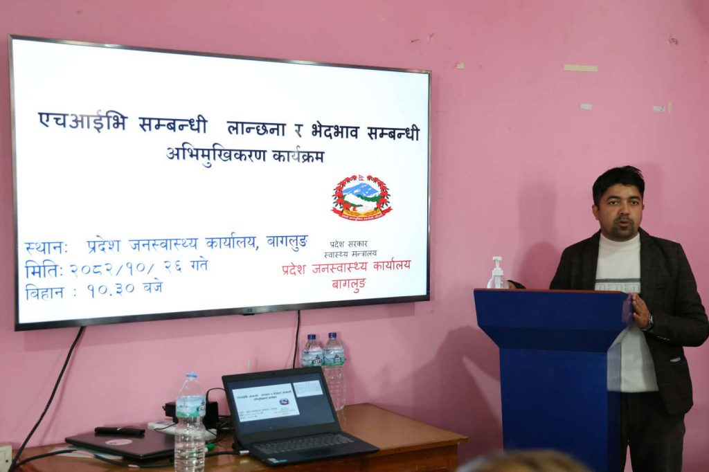 एचआईभी तथा एड्ससँग सम्बन्धित लाञ्छना र भेदभाव न्यूनीकरण गर्ने उद्देश्यले बागलुङमा जनप्रतिनिधि, नेपाल प्रहरी, पत्रकार, एचआईभी संक्रमित व्यक्ति तथा मुख्य जोखिम समूहलाई लक्षित गरी अभिमुखीकरण कार्यक्रम सम्पन्न भएको छ।
