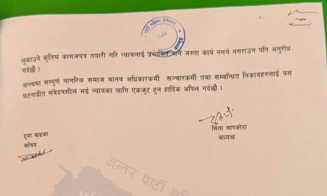 पत्रमा यस्तो प्रकारको अपराधले मानव अधिकार, महिला सुरक्षा तथा कानुनी शासनमाथि गम्भीर चुनौती खडा गरेको बताइएको छ। साथै समाजमा महिलामाथि हुने हिंसा, असुरक्षा र दण्डहीनताको समस्या अझै विद्यमान रहेको स्पष्ट देखिएको सञ्जालको भनाइ छ।
