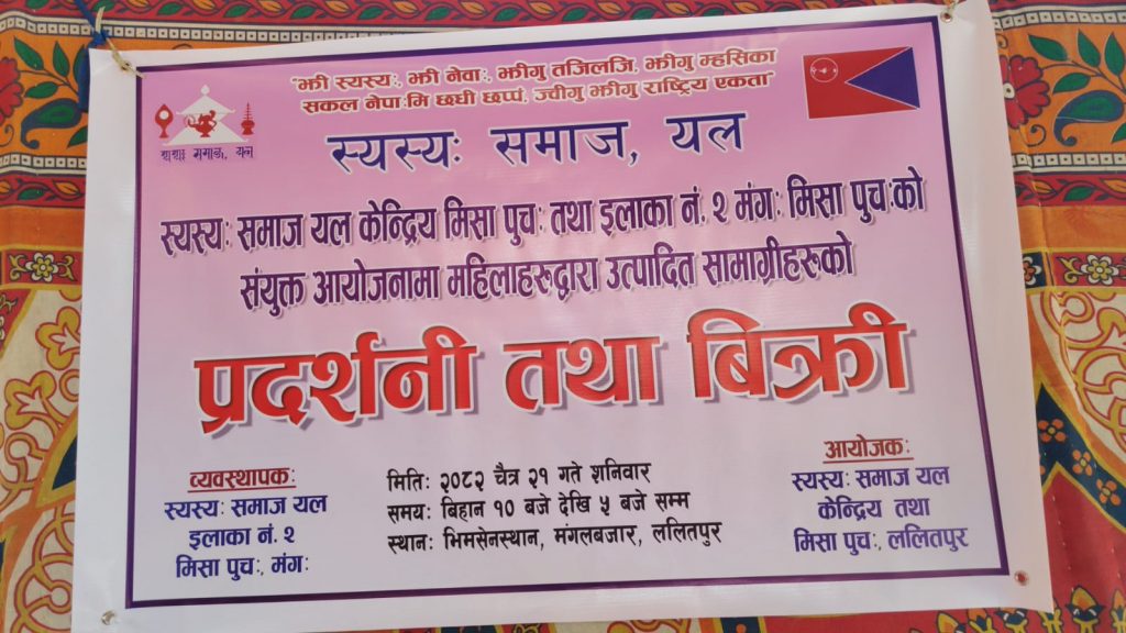 ललितपुरमा महिलाद्वारा उत्पादित सामग्रीहरूको प्रदर्शनी तथा बिक्री कार्यक्रम सम्पन्न भएको छ।