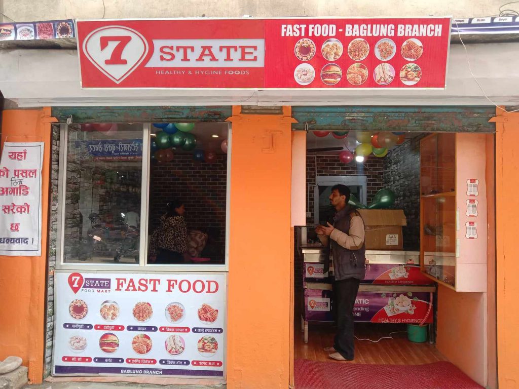 करिब १० लाखको लगानीमा बाग्लुङ बजारको धौलागिरी चोकमा रेष्टुरेण्ट संचालन गरिएको संचालक किशोर सापकोटा र सुनिल सापकोटाले बताए । उनिहरुले ‘सेभेन स्टेट’ मा पानी पुरी र चटपट बाहेक फास्टफुडका सम्पूर्ण परिकार उपलब्ध रहेको र मुल्य पनि सस्तो रहेको बताए ।